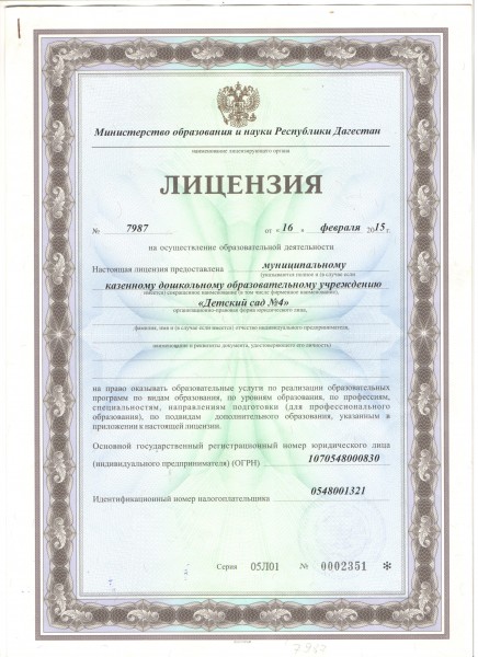 | Полное наименование образовательной организации* | Муниципальное казенное дошкольное образовательное учреждение "Детский сад № 4" |